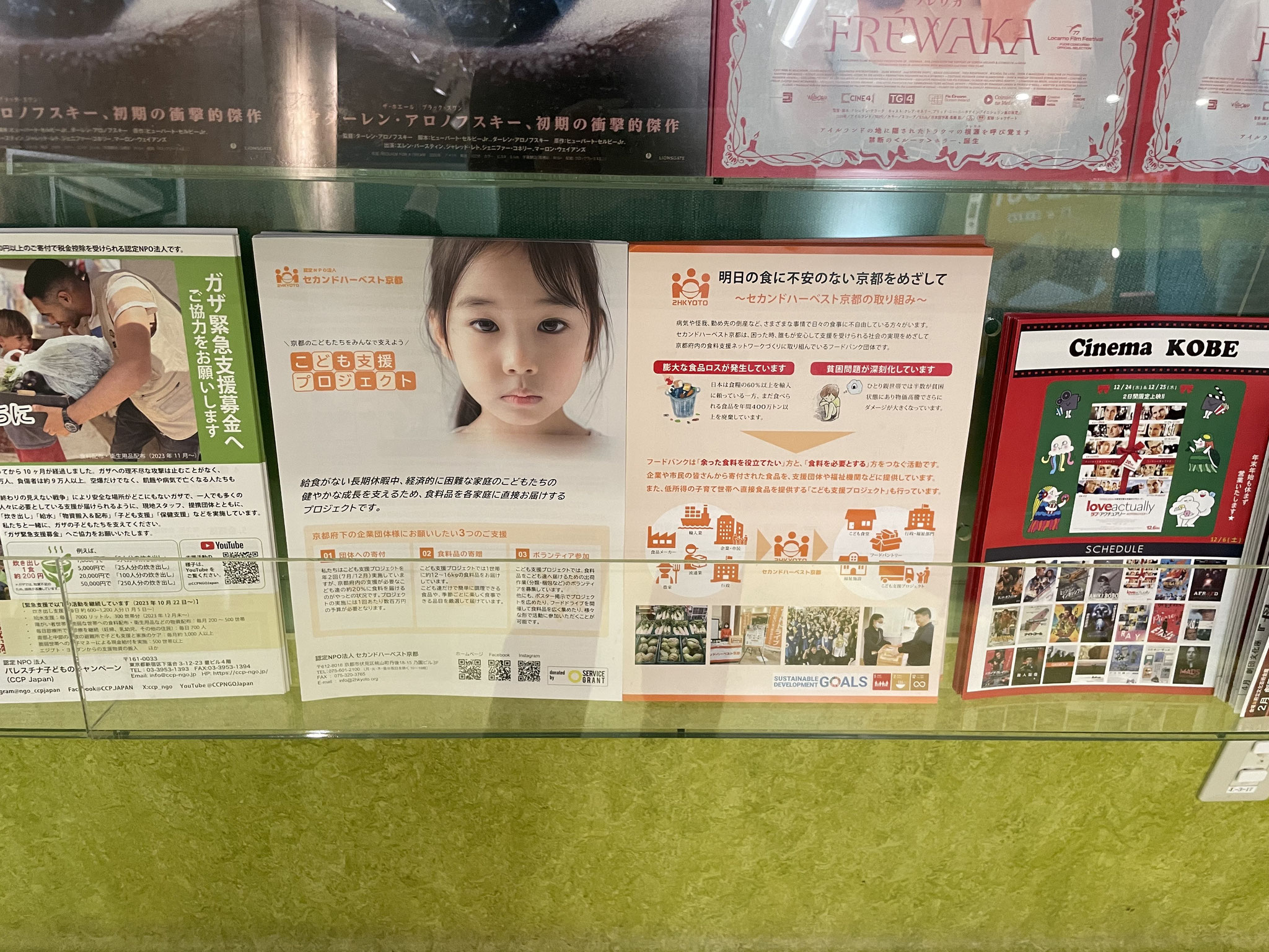 このたび、京都の独立系シアター アップリンク京都 様にて、 セカンドハーベスト京都のチラシ・リーフレットを配架していただけることになりました。 アップリンク京都様は、映画を通じて社会や人のあり方を問いかけ、多様な価値観に触れる場を提供されている映画館です。...