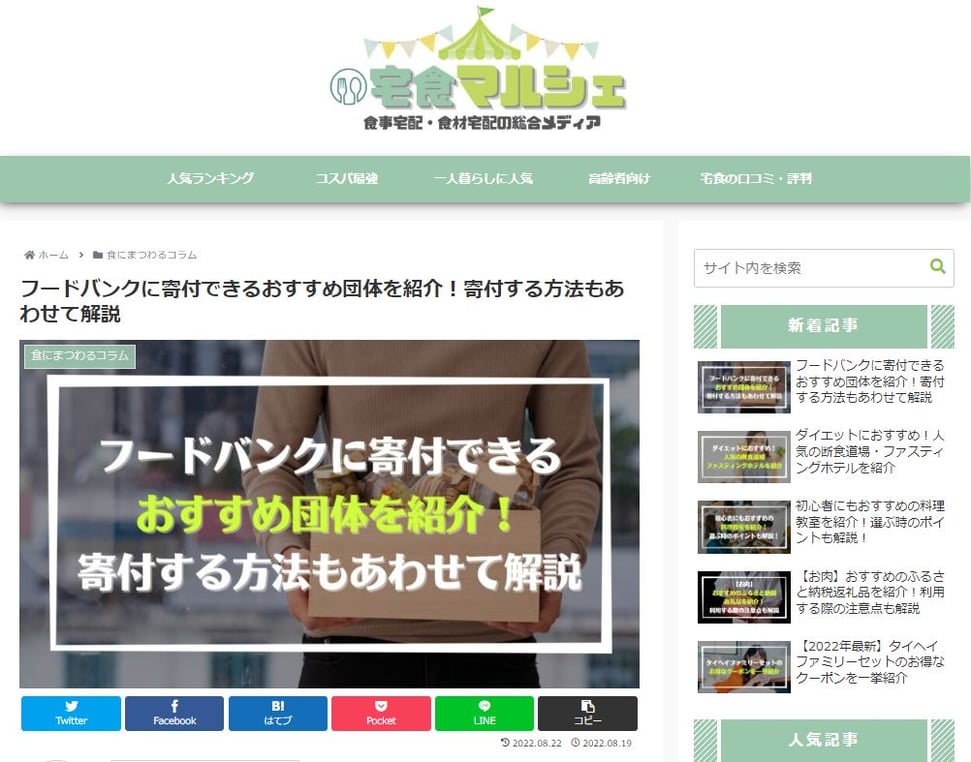 メディア · 2022/08/22 『宅食マルシェ』でご紹介頂きました 宅食マルシェさんの「フードバンクに寄付できるおすすめ団体を紹介!寄付する方法もあわせて解説」という記事でご紹介頂きました フードバンクに寄付できるおすすめ団体を紹介! 寄付する方法もあわせて解説→URL:https://www.takushoku-marche.com/foodbank-donation/ tagPlaceholderカテゴリ: