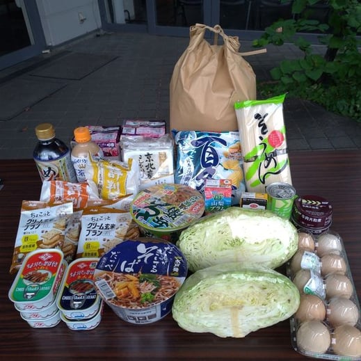 府内5会場で、お米や野菜を含んだたくさんの食品をお配りしました。