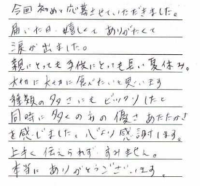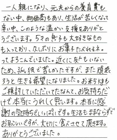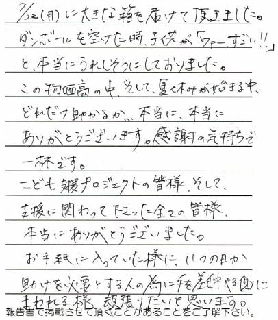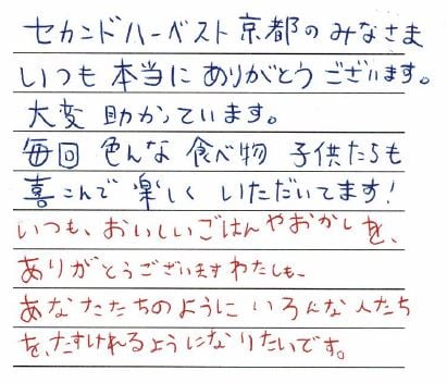 こども支援プロジェクトの利用者からハガキが届きはじめています。