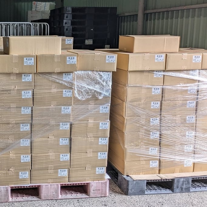 ご寄贈製品は、パレットにして4枚以上!