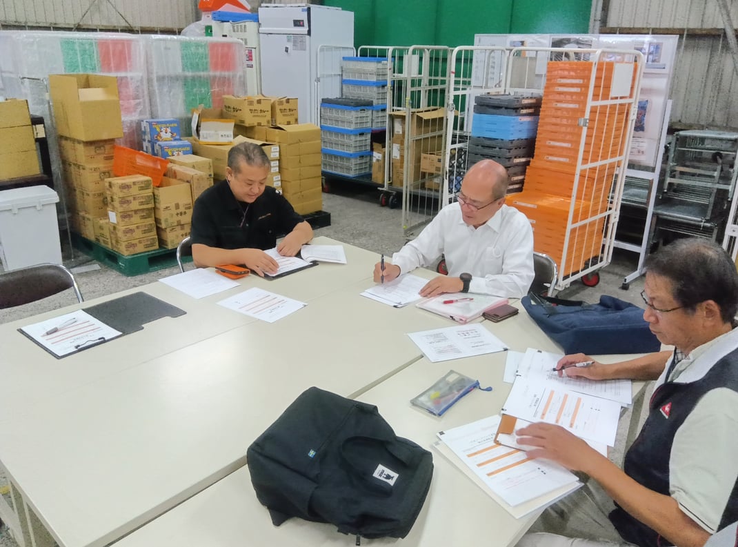 監査では、食品の安全管理や保安業務などを含む全91項目について、2名の認定監査員の方々が倉庫にて丁寧に確認してくださいました。